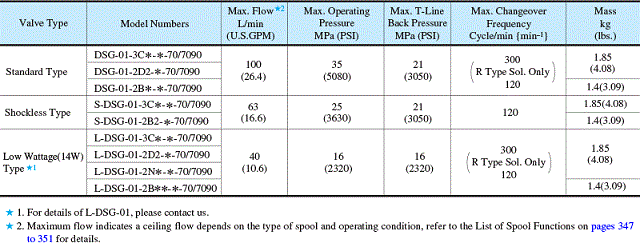 DSG-01系列油研電磁換向閥;?CETOP D03電磁換向閥-標(biāo)準(zhǔn); ·最大限度。工作壓力高達(dá) 35MPa (5,080psi); ·最大限度。流速高達(dá) 100L/min (26.4gal/min)